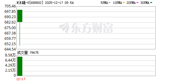 北京商报讯12月17日,沐曦股份(688802)登陆科创板上市,上市首日公司股价高开568.83%,开于700元/股,总市值2801亿元。